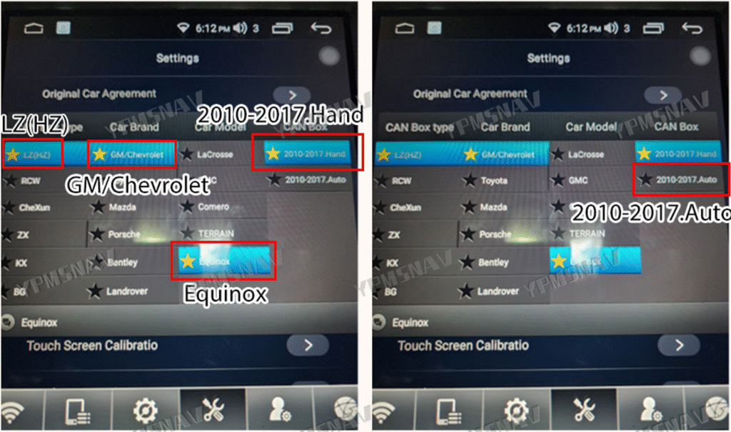2. Check protocol settings: Go to Settings – Original Vehicle Settings – Factory Settings (123456) -Vehicle Model Settings.