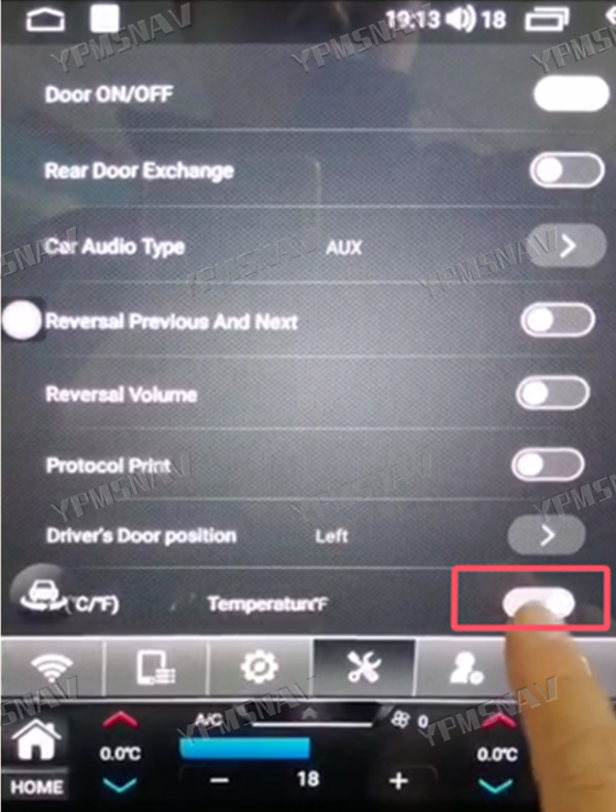 Go to Settings – Factory Settings (123456)- Original Vehicle Settings – Temperature Unit Settings, as shown in the following figure.