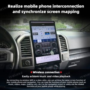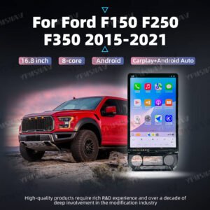 YPMSNAV 16.8 Inch Car Radio For Ford Raptor F150 F250 F350 2015 2016 2017 2018 2019 2020 2021 Tesla Style Vertical HD Touchscreen DVD Multimedia Player 8 Core GPS Navigation Stereo Receiver Wireless Carplay Android Auto Entertainment Display Screen